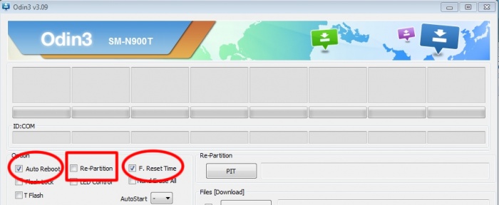 চালান Odin3 v3.10 ওপেন করুন। ১নং চিত্রে লাল চিহ্নিত বক্সগুলো ডিফোল্ট রাখন।